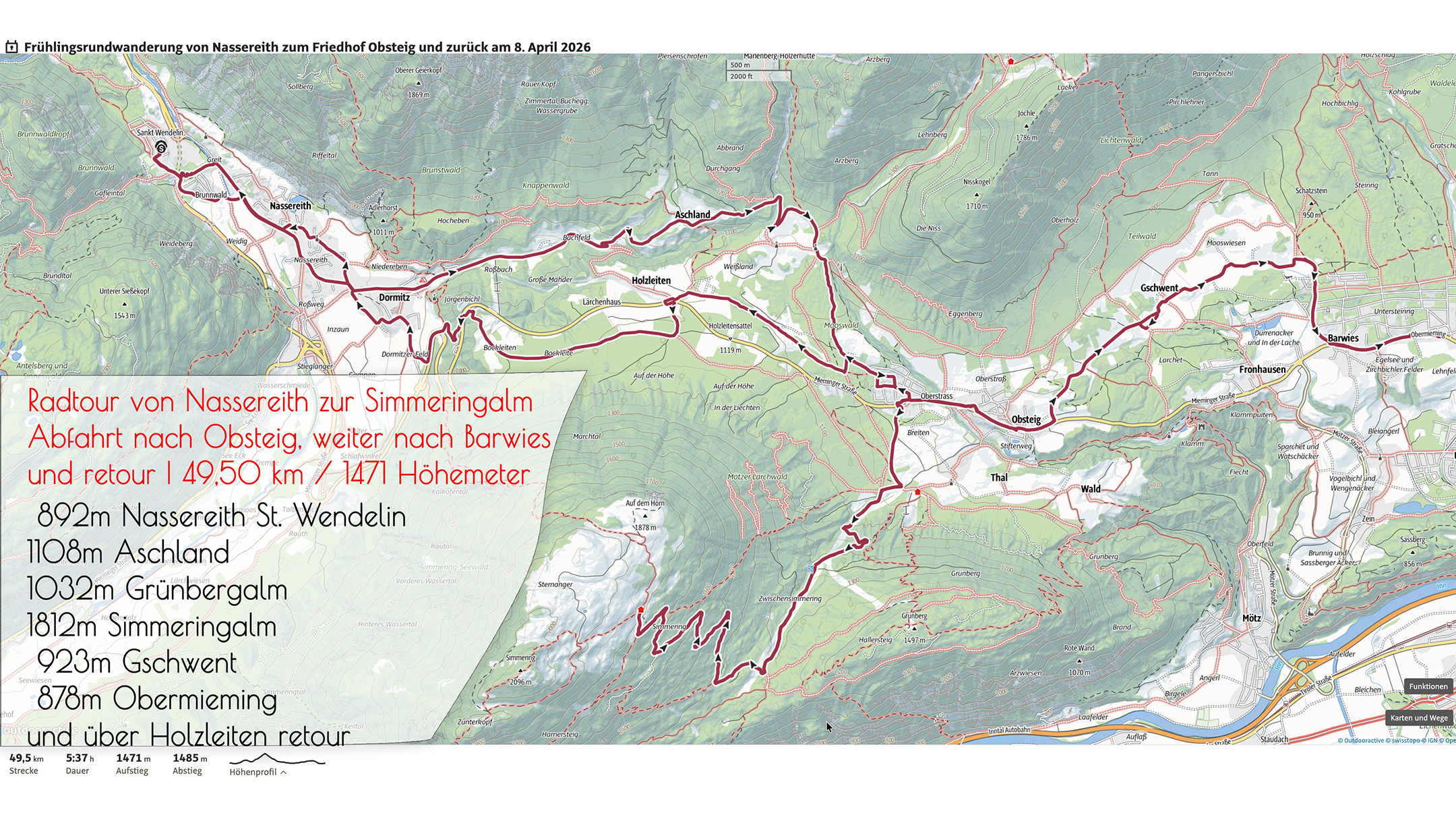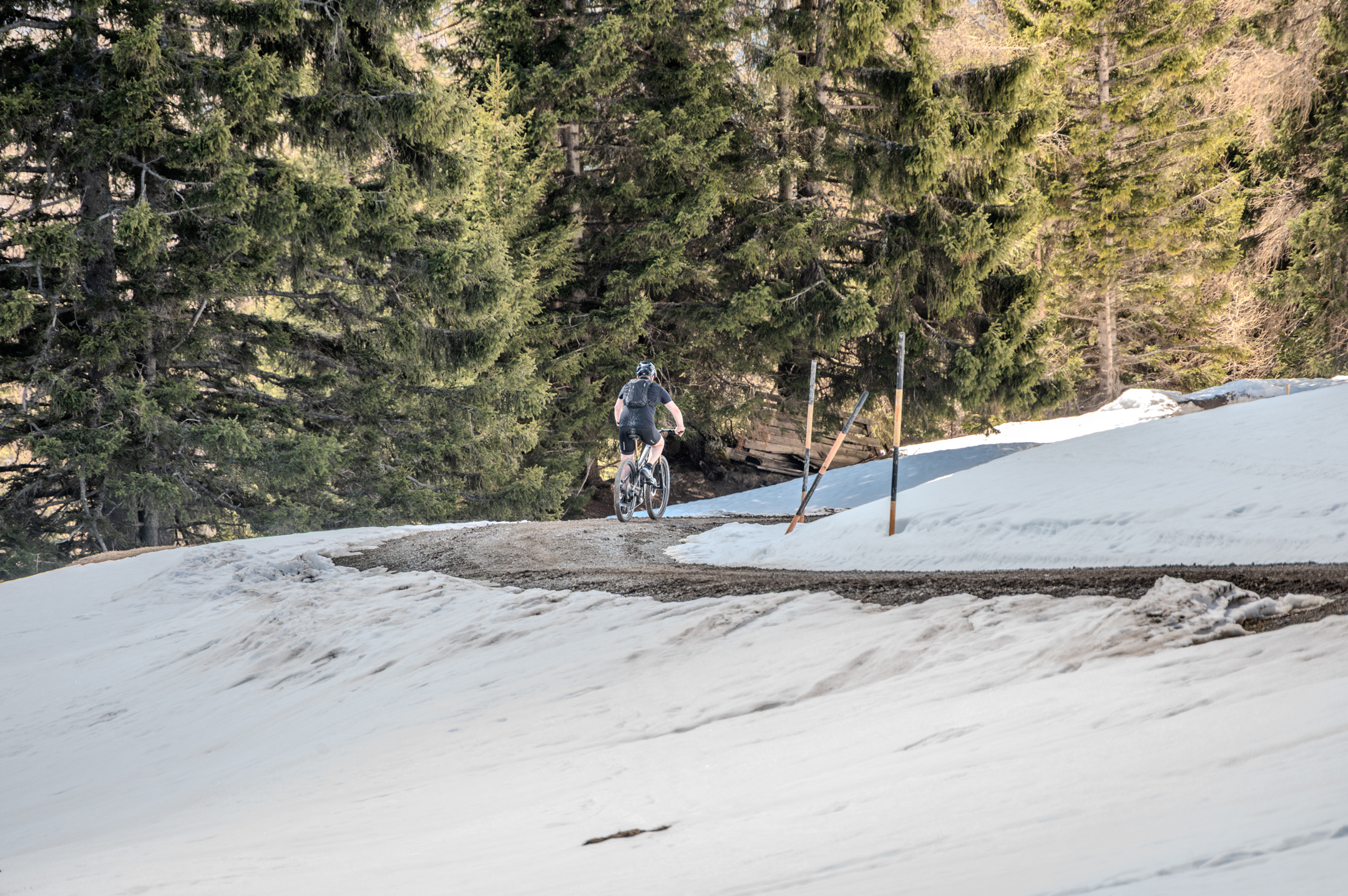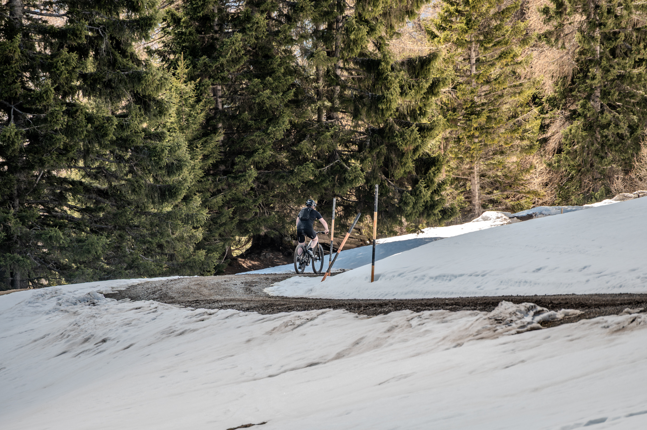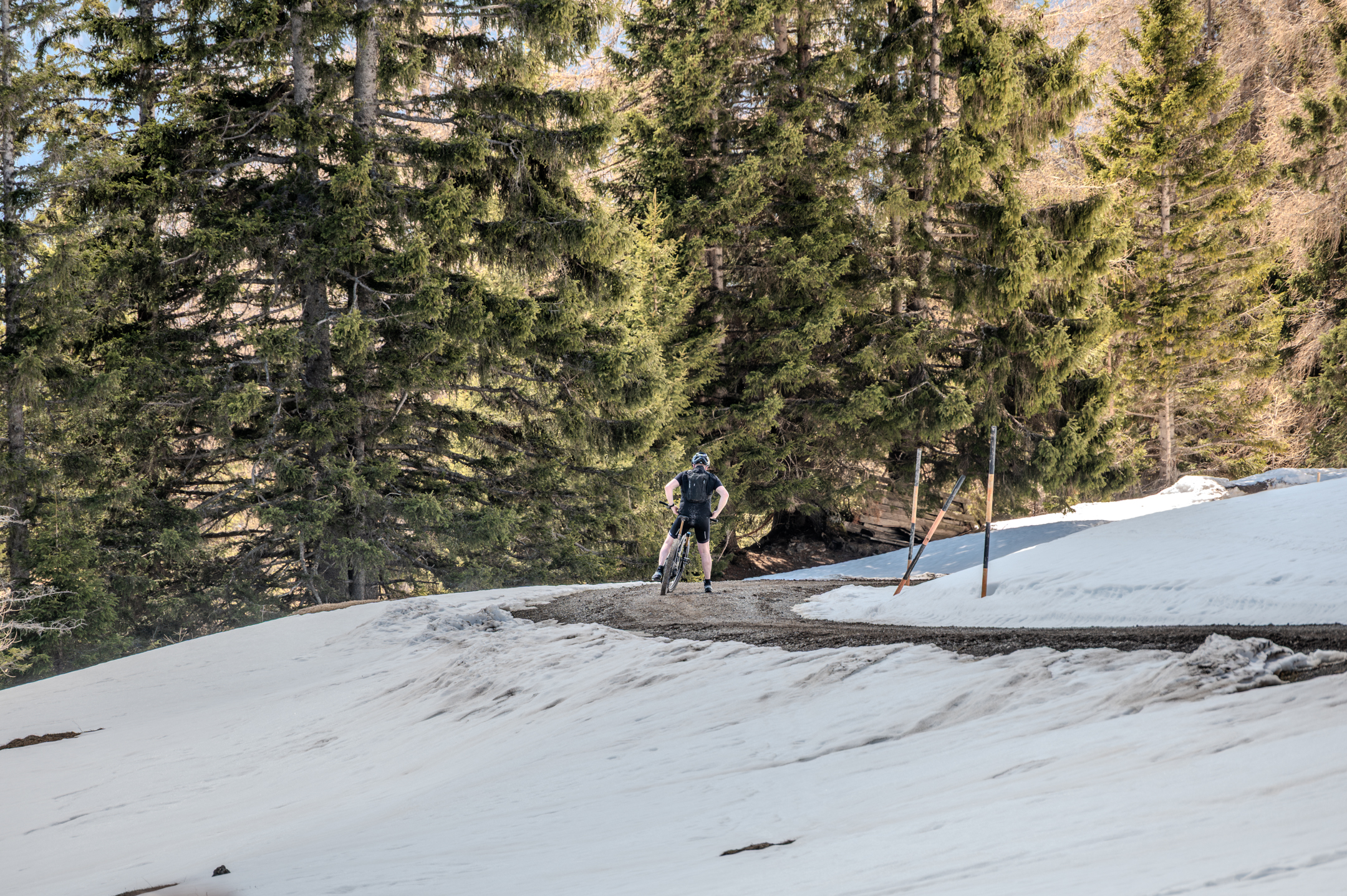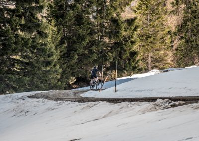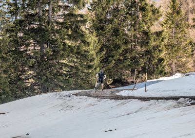 Im Tal dann noch kurz nach Mieming gerollt, an Gschwent vorbei und den Rückweg über Holzleiten gewählt. Da liegt im oberen Berich – entlang der weiten Wiesen – doch noch viel Schnee ….