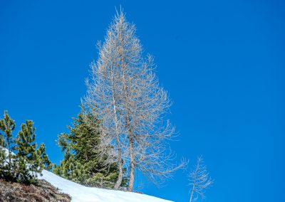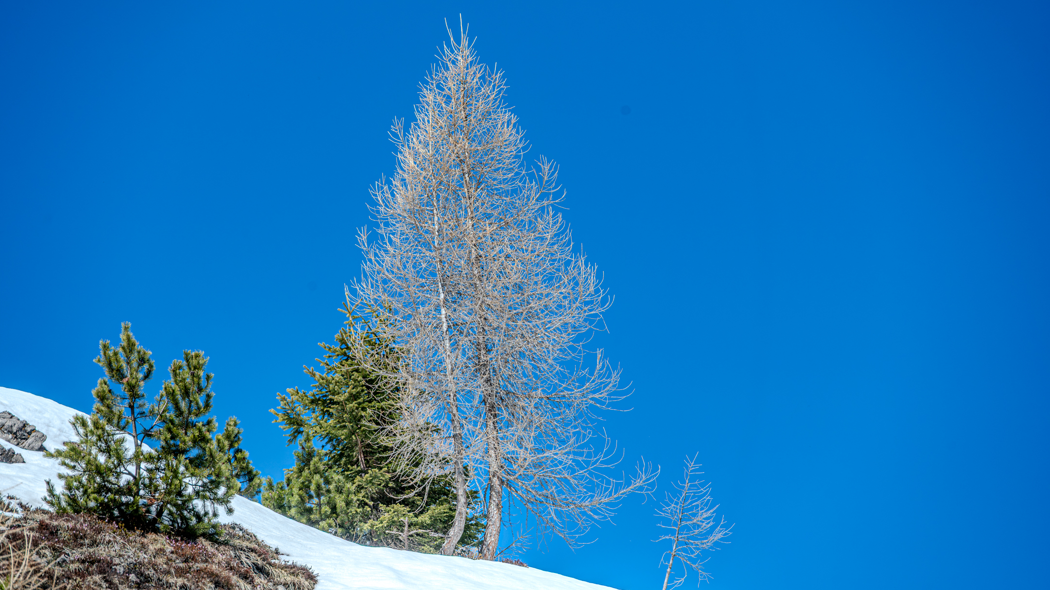 Der herrliche Frühlingstag gibt einen feiner Rahmen für die Tour. Einige kurze Stellen sind noch nicht ganz schneefrei, lassen sich aber meistern. Lediglich kurz vor der Alm ist die Schneeauflage tiefer. Diese heissen Tage werden auch das bald erledigt haben.
