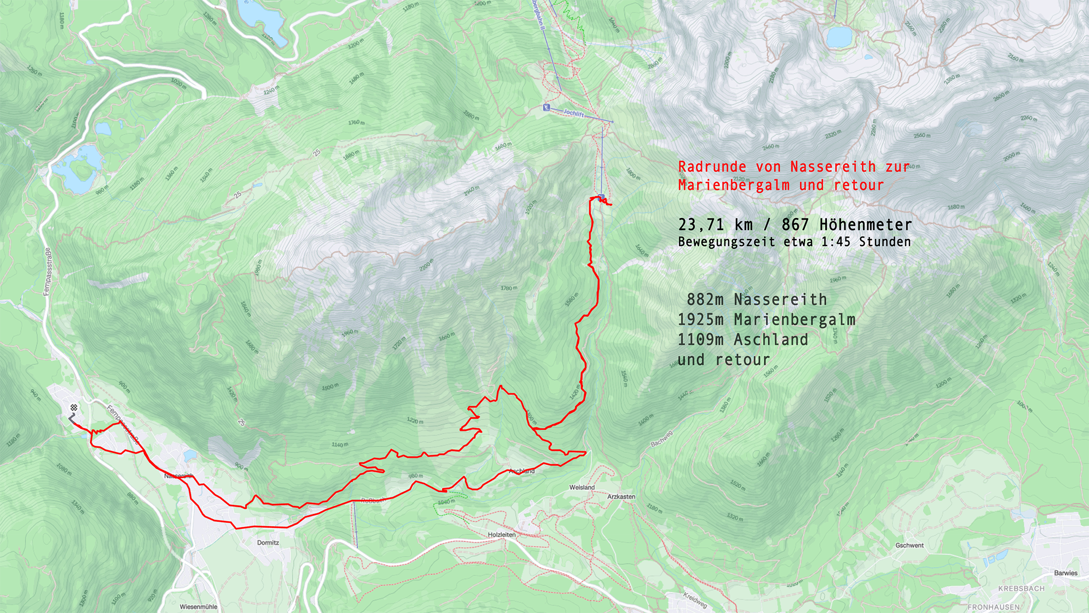 Marienberg Alm Von Nassereith zur Marienberg Alm Variante Auffahrt übers Pleistal und Abfahrt über Aschland.