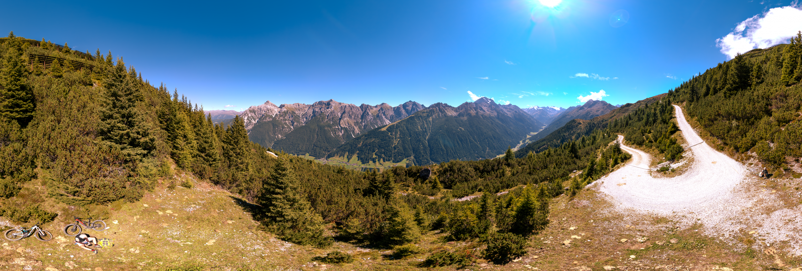Die Abfahrt zur Kaserstattalm und weiter nach Milders führt interessant ins Tal (im langer Tunnel vor dem Bärenbad muss das Rad beleuchtet sein). Der Radweg nach Fulpmes führt uns am Landeplatz der Gleitschirmflieger und dem Kampler See vorbei zurück zum Ausgangspunkt.